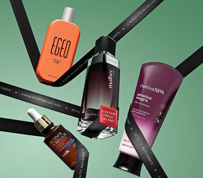 Os produtos em oferta estão disponíveis até 30 de novembro nas lojas físicas, site, app, WhatsApp e revendedores, com destaque para fragrâncias queridinhas como Malbec, Floratta Red e Egeo Spicy Vibe, além das linhas Match e Botik.